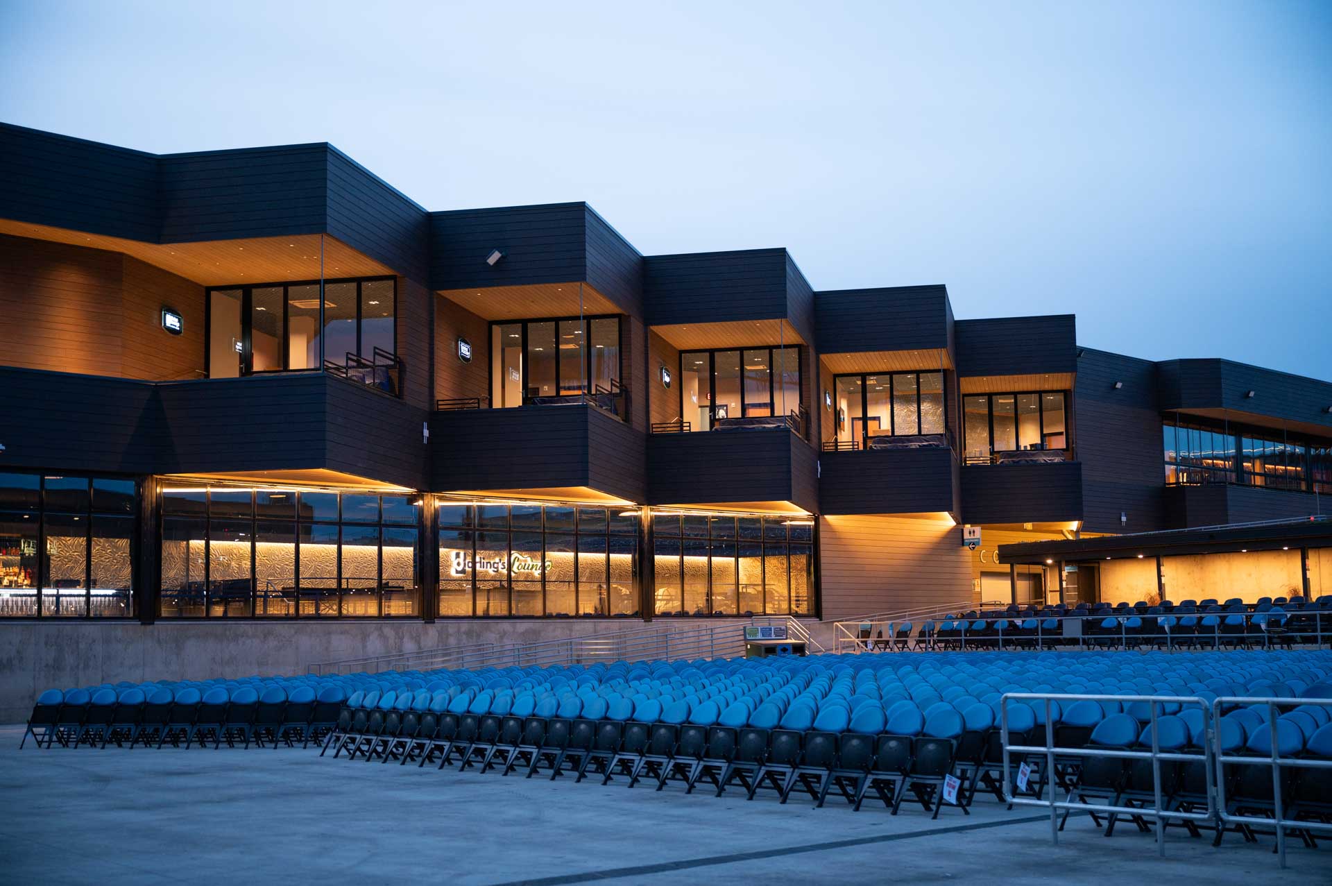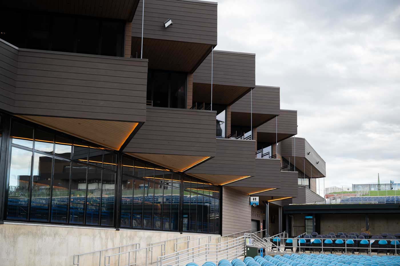 Bangor, Maine, sits on the banks of the Penobscot River with a rich history tied closely to wood. Naturally, a new amphitheater and architectural jewel for the city should showcase the beauty of wood. But Maine weather extremes are tough on exterior hardwood. The architect and client agreed that the look of premium wood was what the aesthetics of this venue needed but knew the ongoing maintenance of exterior hardwoods was not possible, given the realities of Maine’s climate and the busy music season.