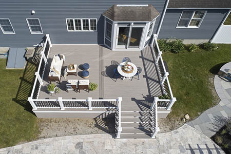 Different styles of decks featuring larger and smaller sections, such as a rectangle with a smaller octagon, give you the flexibility to host both large and intimate gatherings.