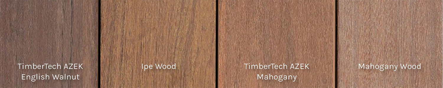 Take a look at these samples of real hardwoods and capped polymer deck boards from the TimberTech® AZEK® Vintage Collection®, and ask yourself if you’d be able to pick out which is which: