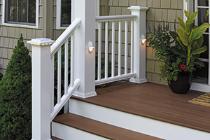 Lighting gives your porch an inviting glow. Illuminate key points in your porch design by placing lights in the railing, stair risers, and porch boards. Mix and match for different effects.