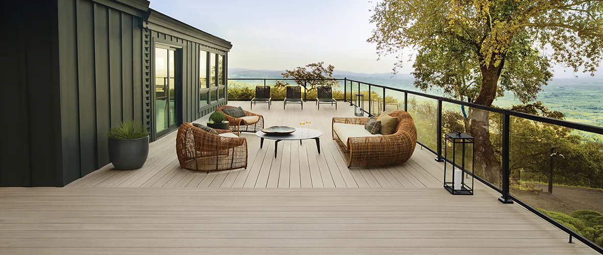 Focusing on how to harden your home goes hand-in-hand with maintaining safe home ignition zones. Hardening your home with fire-resistant building materials, like TimberTech Advanced PVC Decking and Railing, tempered glass windows, fire-resistant roofing materials, and sealed eaves, creates fewer opportunities for fire to take hold. Together, these measures help improve your home’s ability to withstand a wildfire.