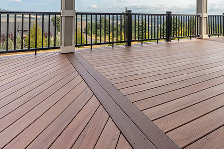 Rich brown composite decking is a classic warm tone that comes in a several shades that complement a wide variety of homes and styles.