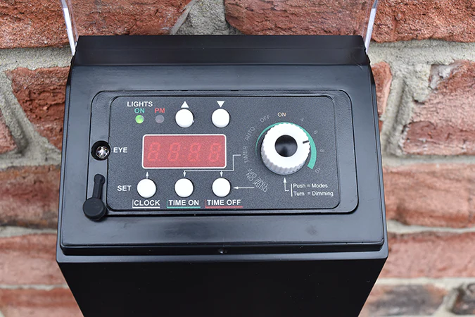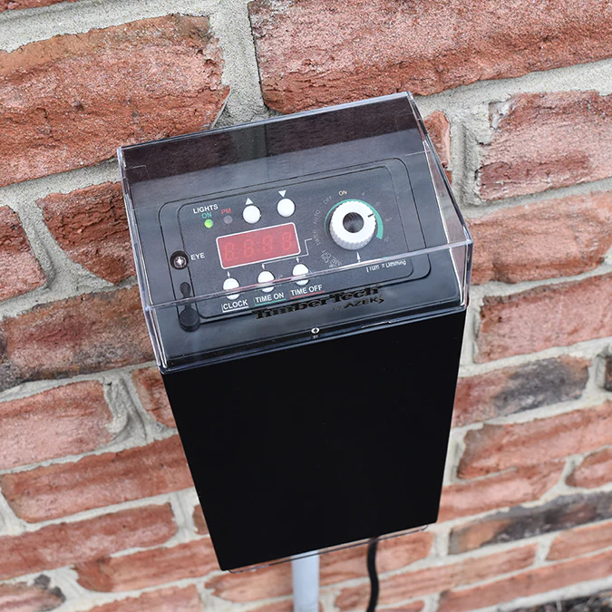 Remote-controlled power pack with built-in timer and dimmer features simple programming options — adjust brightness, set dusk-to-dawn sensors, and schedule on/off cycles.