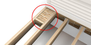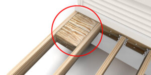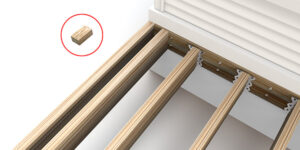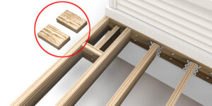- Continue applying blocking along the edge of the deck frame at an interval of 16″ on-center, max.