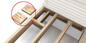 - Place corner support joist perpendicular to the blocking, which is set 1-1/2″ below the top of the joists to support those flat blocks which will be added in step 3.