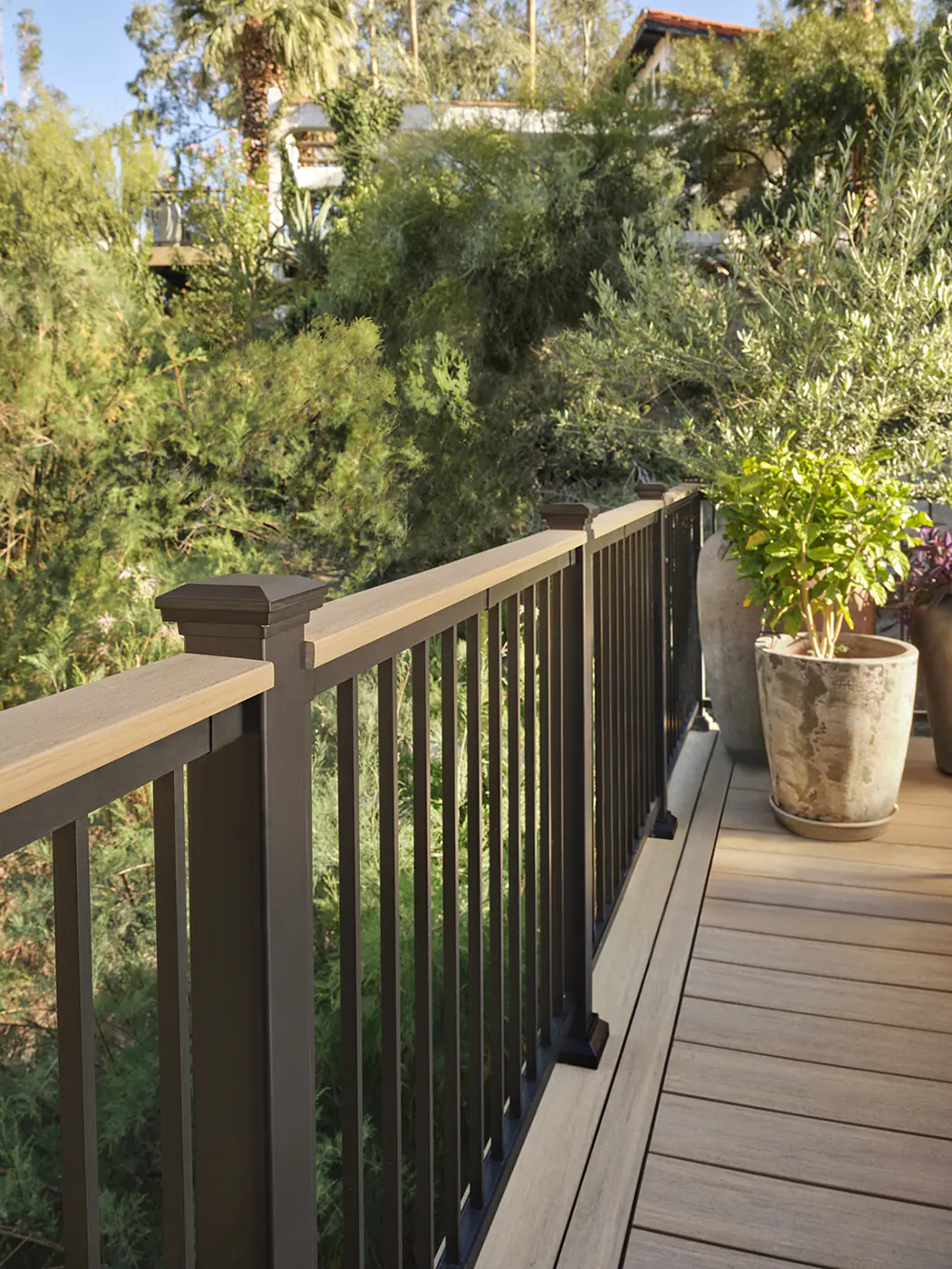Made from powder-coated aluminum, TimberTech aluminum railing delivers a durable, corrosion-resistant design with stylish, wrought-iron-inspired aesthetics.