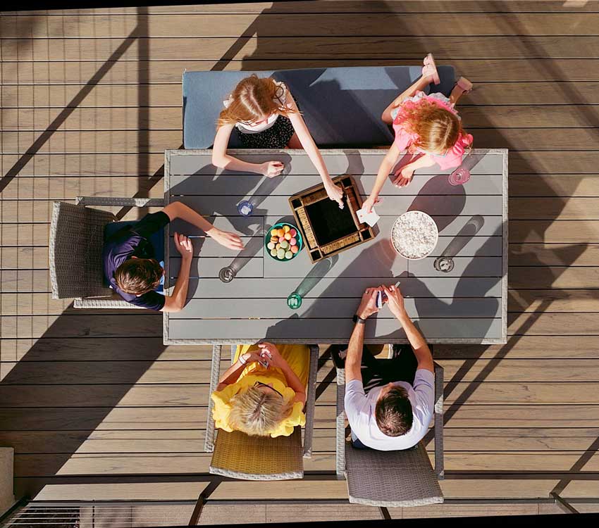Jason and Kelly’s upgraded deck gave them a new outlook on their home. “The wood deck before wasn’t that inviting. With TimberTech, it’s like an extension to our home. Being able to furnish it and be out there grilling and hanging out is exciting. It’s part of our house that we really weren’t enjoying as much before.“