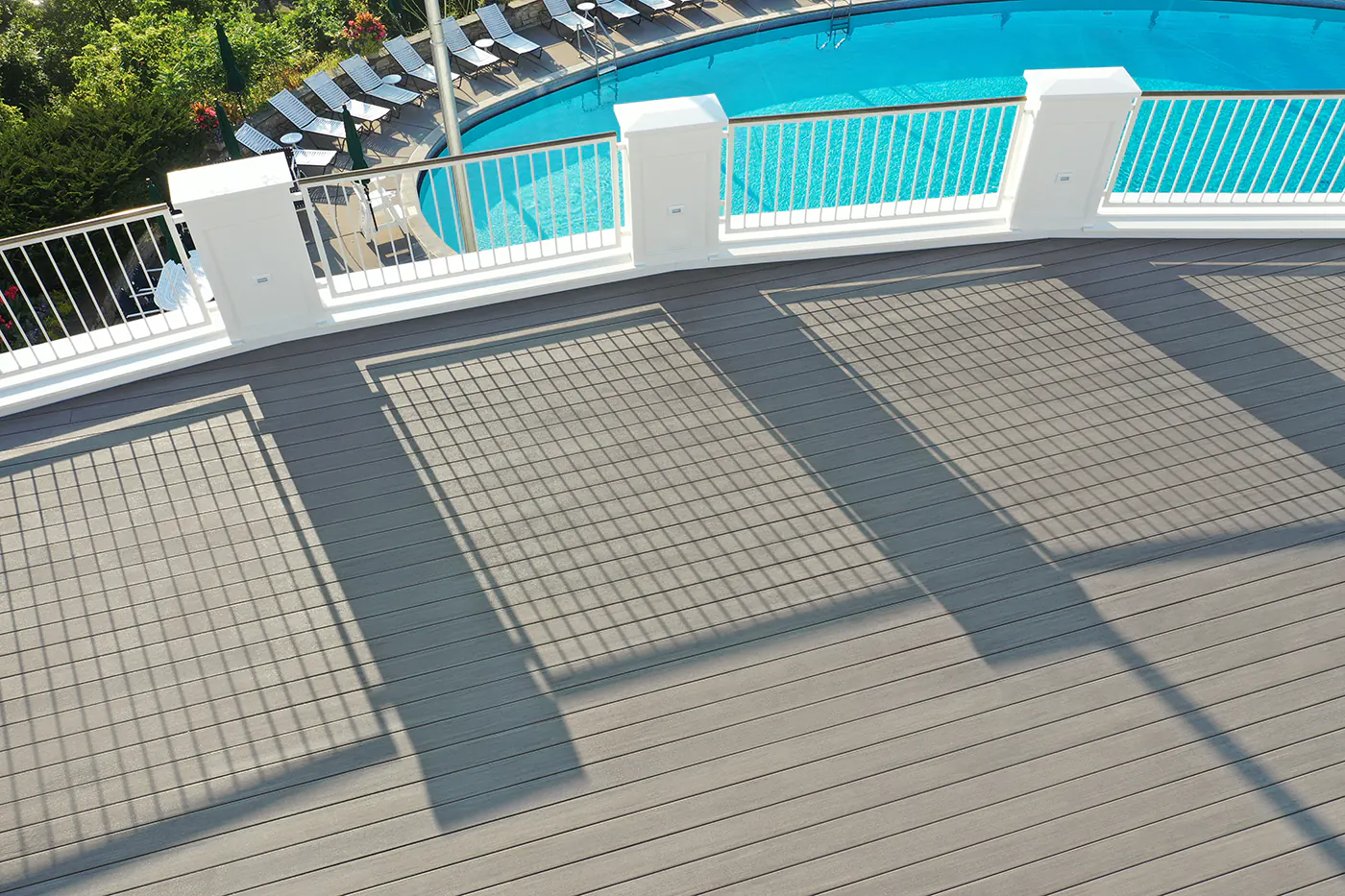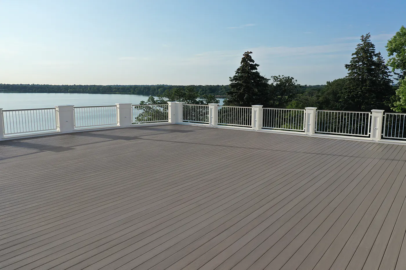 The Minikahda Club owners loved the color of their weathered ipe deck and wanted to recreate it. To get that beautiful, gray look, Jon Wineinger, Project Superintendent, and Jake Machone, Project Manager, recommended the Vintage Collection® in Coastline.“The gray color really pops against the white, Greek Revival style building,” Jon said. “It also complemented the brass handrails — Coastline really pulled the space together,” added Jake, “it looks awesome.”Minikahda engineers are thrilled they no longer need to sand, stain, or seal the new low-maintenance TimberTech deck. The old ipe deck required routine maintenance, including restaining every three years.With plans to build additional decks and verandas in the future, color consistency between materials is critical to the overall club aesthetic — and something wood can’t deliver. When staining different sections of wood months or years apart, fading and weathering make it difficult to ensure the final color will match. But with fade-resistant TimberTech, they can count on consistent, beautiful color that lasts.Working with curves in a pre-defined space presented a few building complications, but TimberTech rose to the challenge. Our easy-to-cut PVC material made creating that beautifully curved shape easier than if they were using dense hardwood or traditional composite. And Jon and Jake’s crew were able to fit the space easily with our Multiwidth boards — a great option for creating unique, elevated deck designs.This was Jake and Jon’s first time building a deck with TimberTech, and their experienced team was glad to have the help of our world class customer service to provide tips and tricks throughout the project. “The customer support alone makes TimberTech a superior product and company to work with,” Jake said.Jon was so impressed with his TimberTech experience that he plans to use it on his own home. “It’s cooler on the feet and splinter free,” Jon said. “Plus, it’s easier to drill than traditional composite, which is great for installation.”With views of the lake and Minneapolis skyline, the new rooftop deck is a perfect venue for the many events the club hosts year after year. And while the skyline may change, their deck’s performance will continue for decades.
