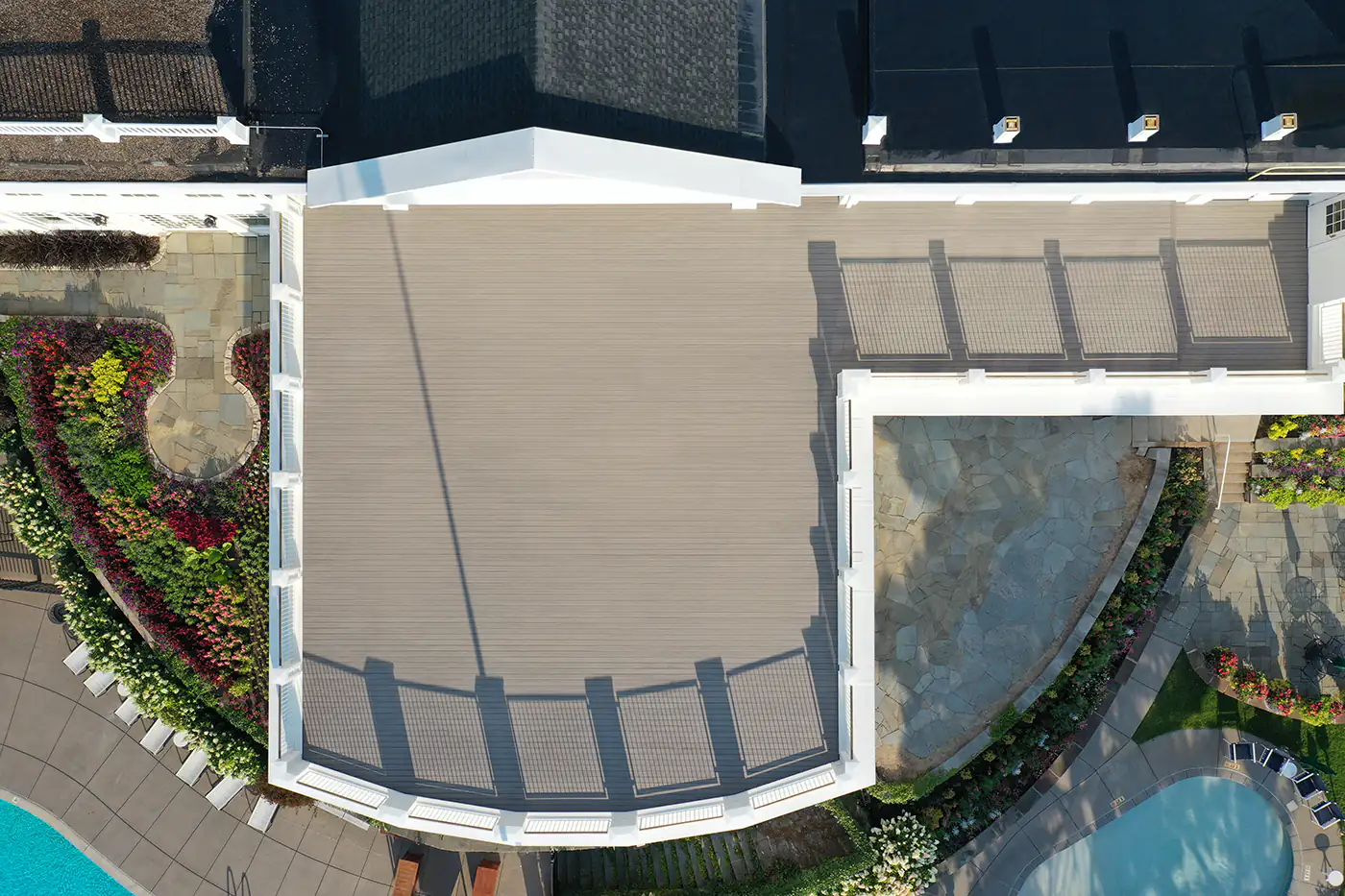 When the roof over the Minikahda Club’s ballroom needed replacing, the rooftop ipe deck was part of the demolition. This was the perfect opportunity for Minikahda to replace it with decking that was not only low maintenance, but more sustainable — TimberTech Advanced PVC.